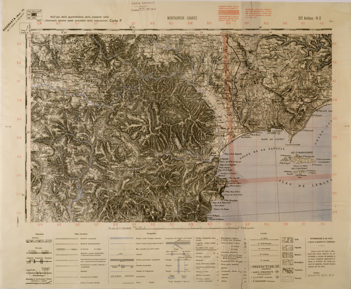 "Carta realizzata dall' IGM mediante ingrandimento della carta alla scala di 1:80.000 dell' Istituto Geografico Francese, edizione 1936 stampa 1937"