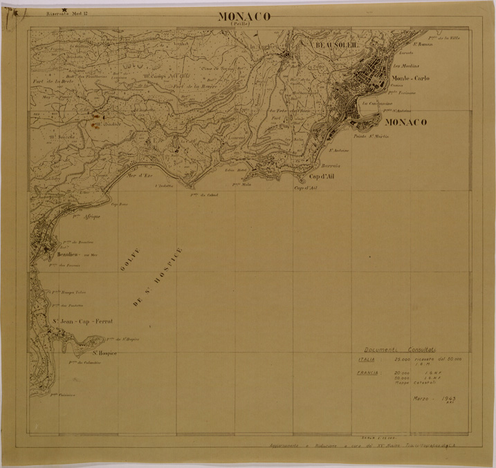 "Tavolette alla scala di 1:25.000 della zona di confine Italo - Francese occupata dal XV Corpo d' Armata per conto del XV Comando G.A.F."