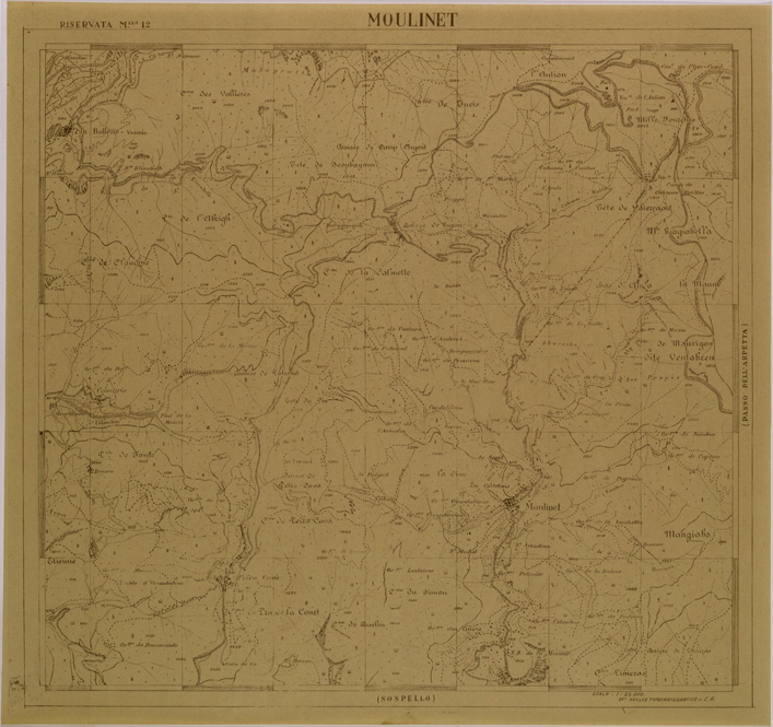 "Tavolette alla scala di 1:25.000 della zona di confine Italo - Francese occupata dal XV Corpo d' Armata per conto del XV Comando G.A.F."