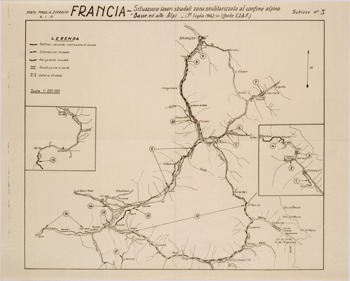 LAVORI STRADALI NELL ZONA SMILITARIZZATA AL CONFINE ALPINO BASSE ED ALTE ALPI (FRANCIA) SCHIZZO N 3