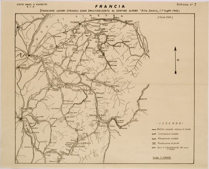 LAVORI STRADALI NELLA ZONA SMILITARIZZATA AL CONFINE ALPINO ALTA SAVOIA (FRANCIA) SCHIZZO N 7