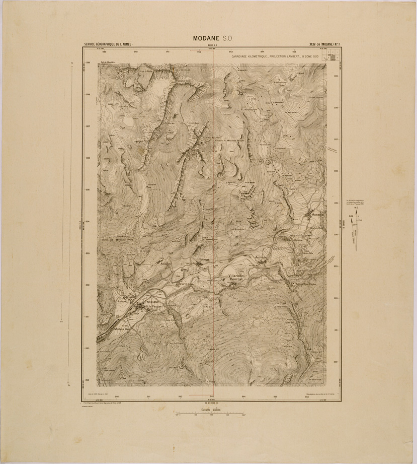 "Carta del Service Geographique de l'Armèe Francese compilata con rilievi degli anni dal 1889 al 1905 aggiornata nel 1927 e stampata nel 1928"