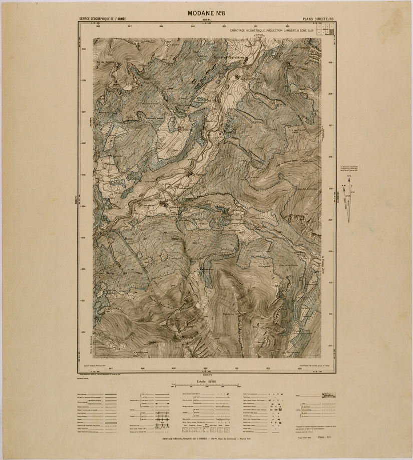 "Carta del Service Geographique de l'Armèe Francese compilata con rilievi degli anni dal 1889 al 1905 aggiornata nel 1927 e stampata nel 1928"