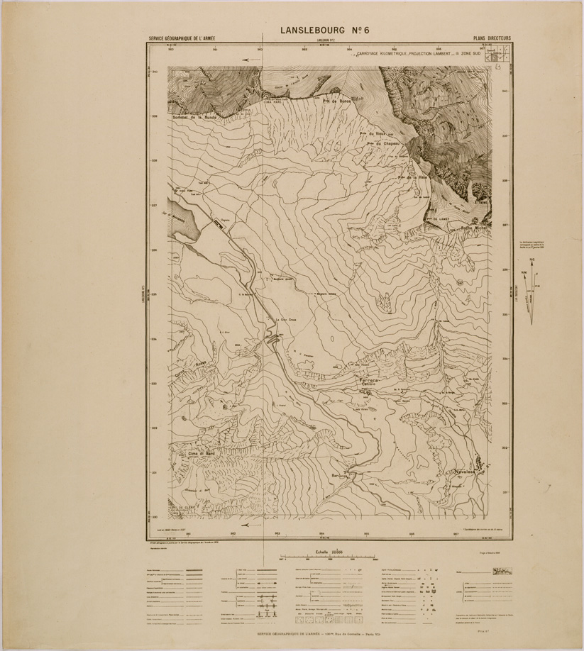 "Carta del Service Geographique de l'Armèe Francese compilata con rilievi degli anni dal 1889 al 1905 aggiornata nel 1927 e stampata nel 1928"