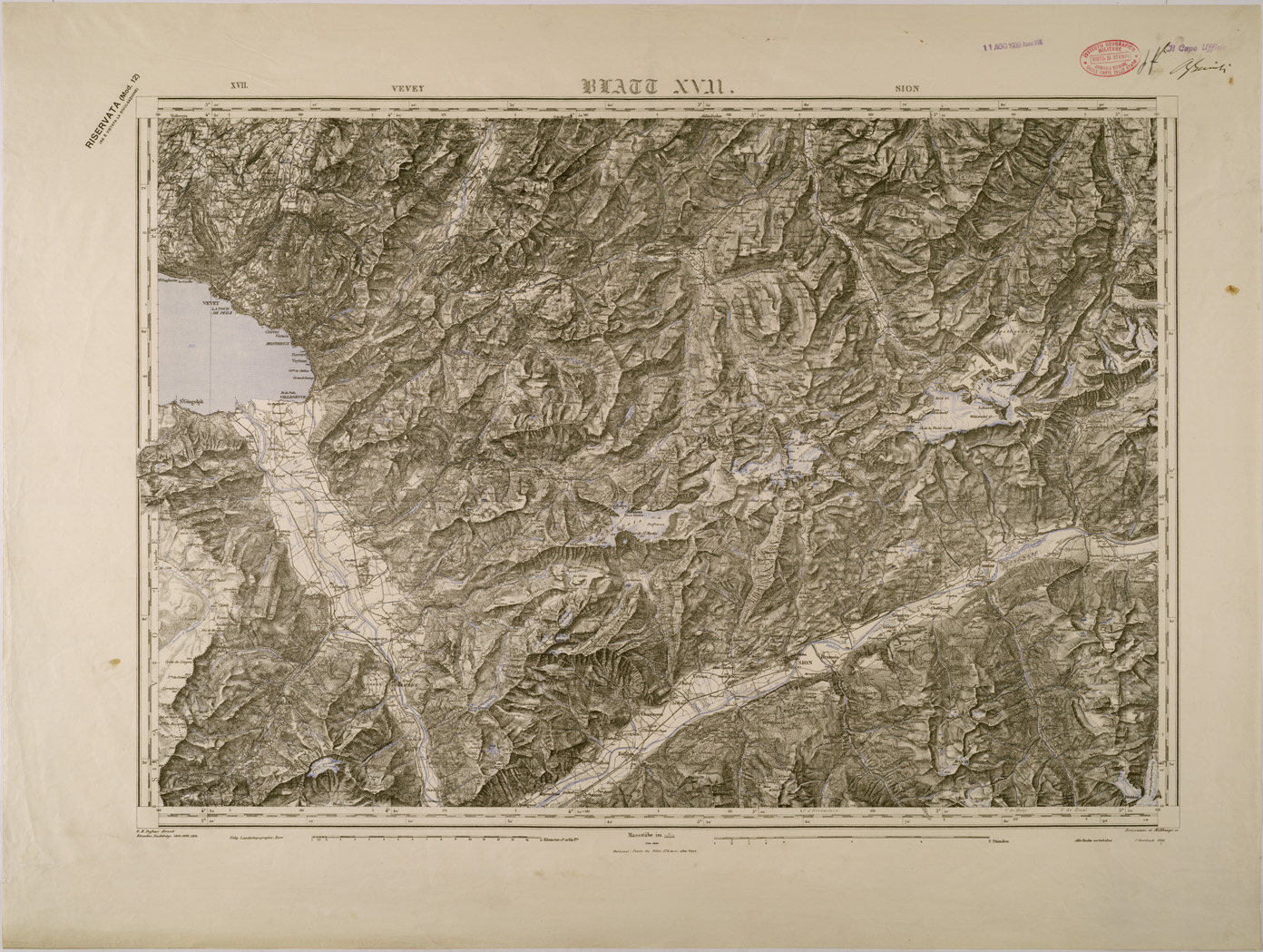 CARTA DELLA SVIZZERA - FOGLIO XVII - VEVEY SION