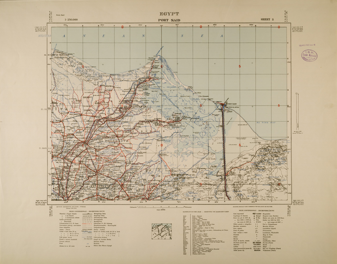 "Riproduzione da analoga carta Inglese, traduzione dei nomi Arabi e segni convenzionali in Italiano e Tedesco stampa IGM 1941"