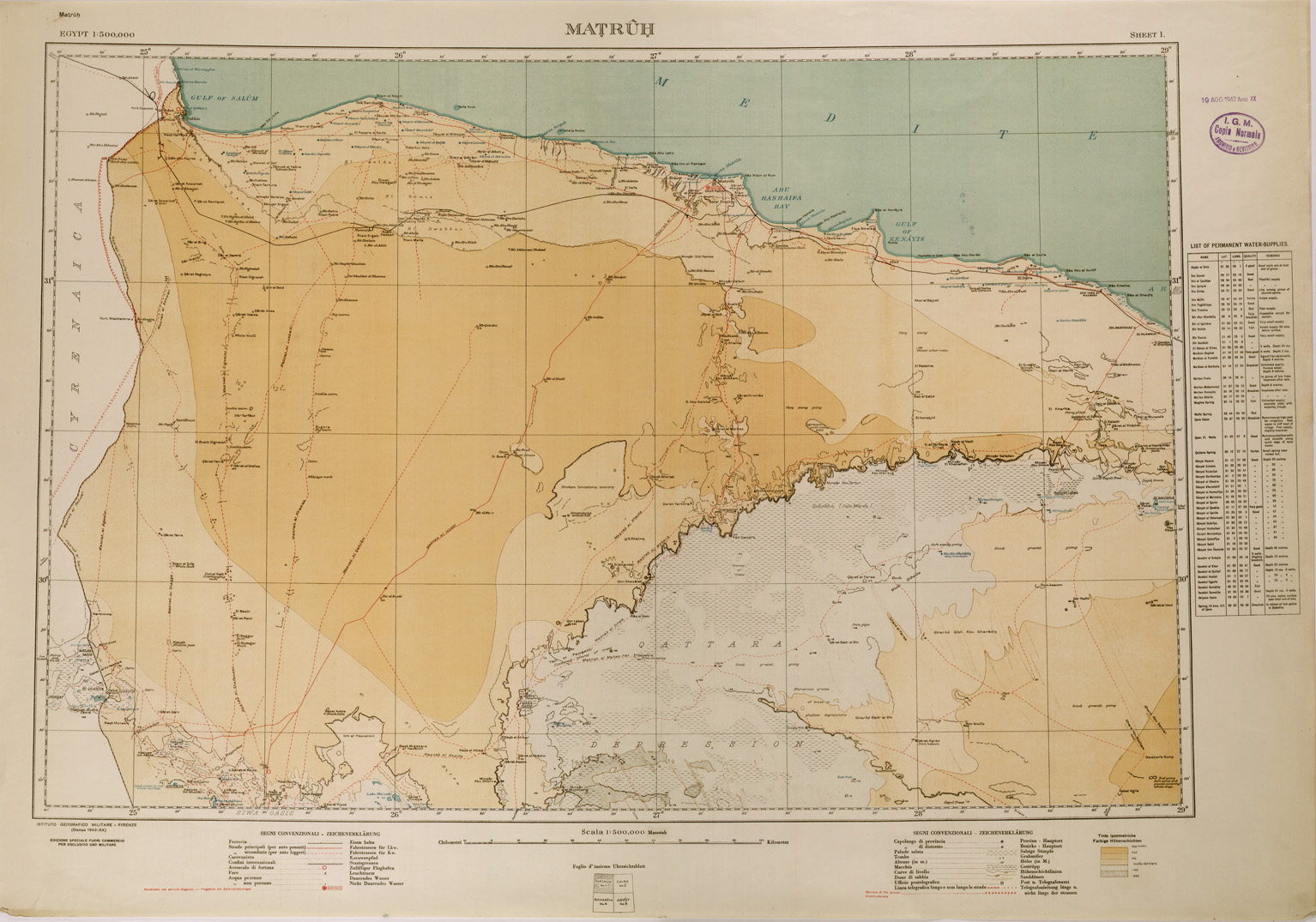 "Riproduzione da analoga carta Inglese, stampa IGM 1941 - 1942"