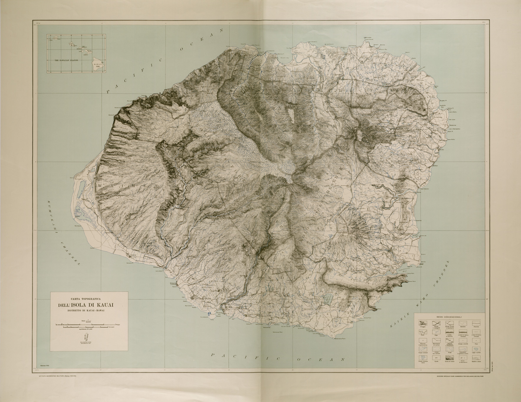 CARTA TOPOGRAFICA DELL' ISOLA DI KAUAI DISTRETTO DI KAUAI - HAWAI