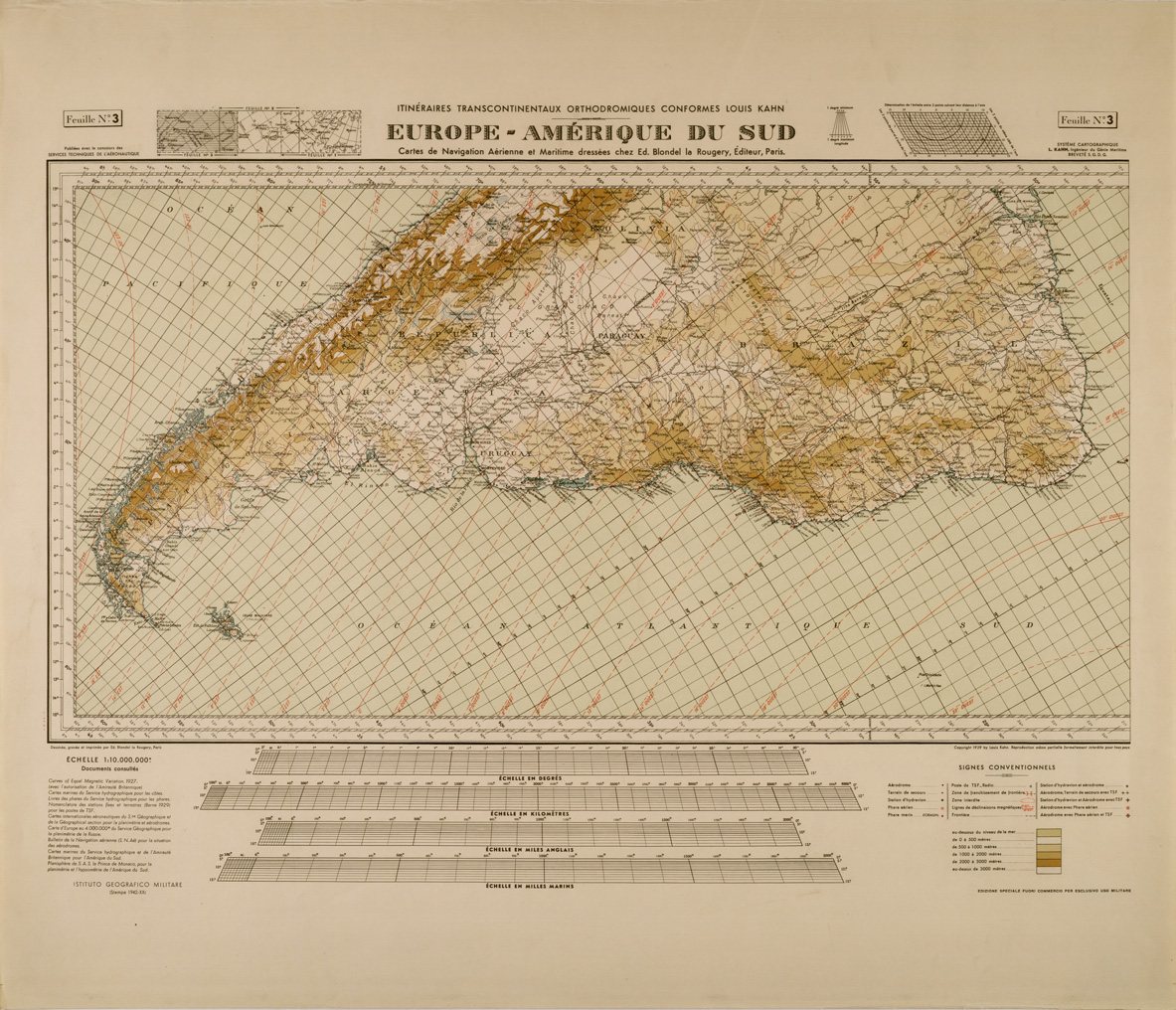 "Riproduzione della carta realizzata nel 1929 dall' Ingegnere marittimo Louis Kahn con il concorso del Servizio Tecnico dell' Aeronautica Francese per l' editore Blondel la Rougery, Paris, stampata dall' IGM nel 1942"