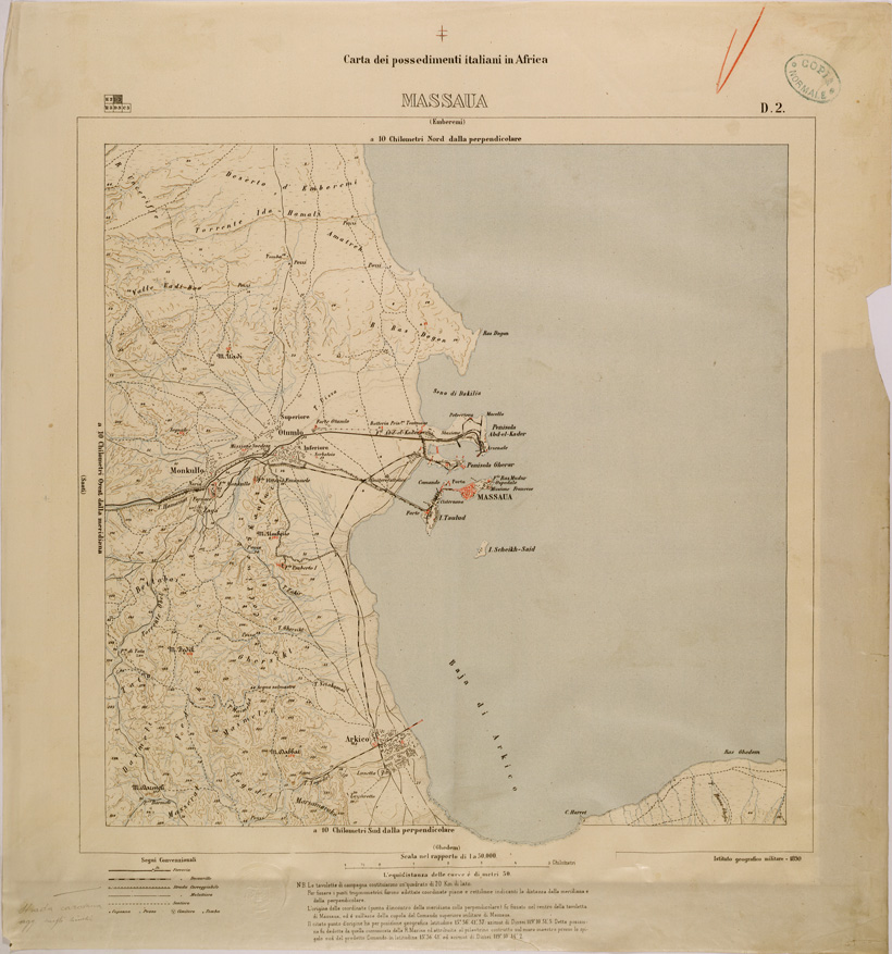 CARTA DEI POSSEDIMENTI ITALIANI IN AFRICA - FOGLIO D2 - MASSAUA