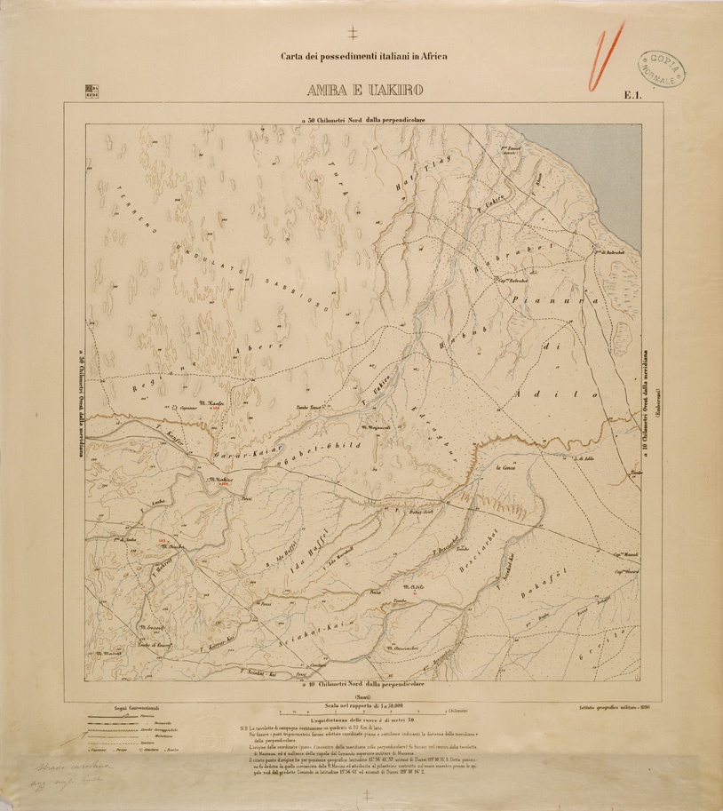 CARTA DEI POSSEDIMENTI ITALIANI IN AFRICA - FOGLIO E1 - AMBA E UAKIRO