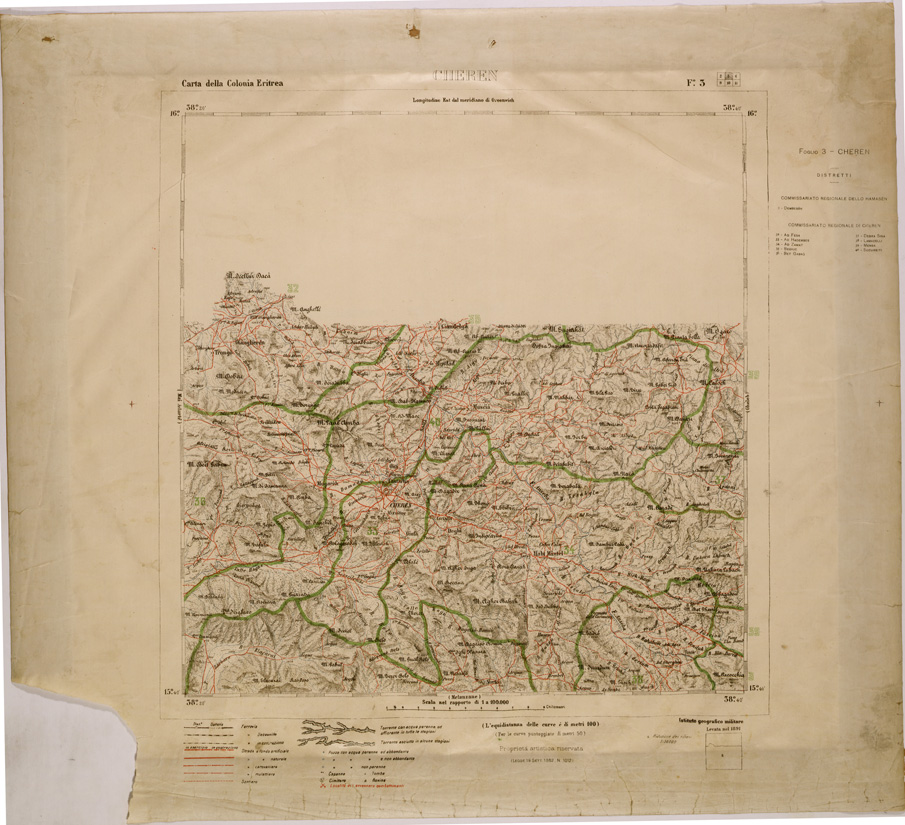 CARTA DELLA COLONIA ERITREA LIMITI AMMINISTRATIVI FOGLIO 3 CHEREN
