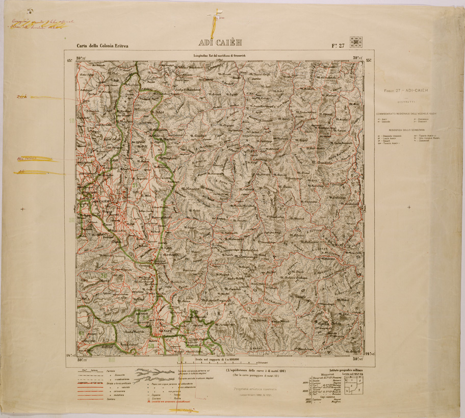 CARTA DELLA COLONIA ERITREA LIMITI AMMINISTRATIVI FOGLIO 27 ADI CAIEH