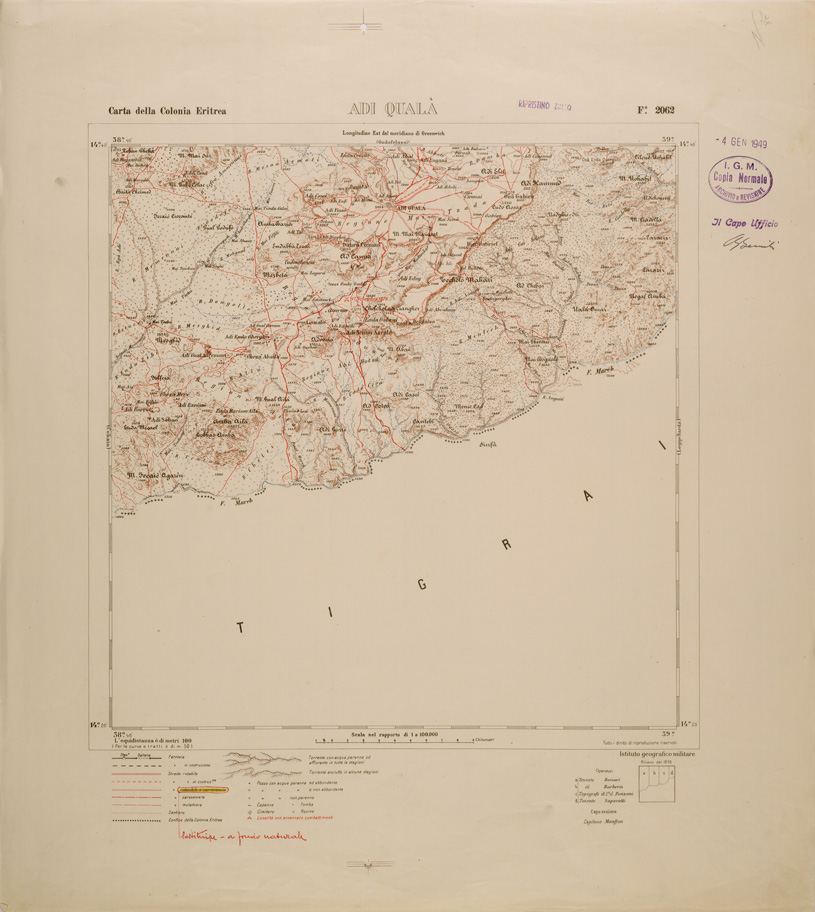 CARTA TOPOGRAFICA DELLA COLONIA ERITREA - FOGLIO 2062 - ADI QUALA