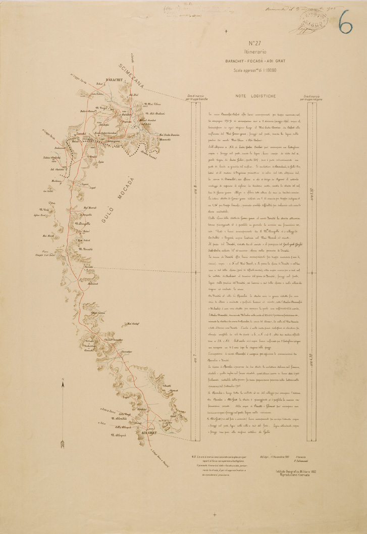 "Itinerario rilevato a vista nel 1901, scala approssimativa e carta corredata di note logistiche."