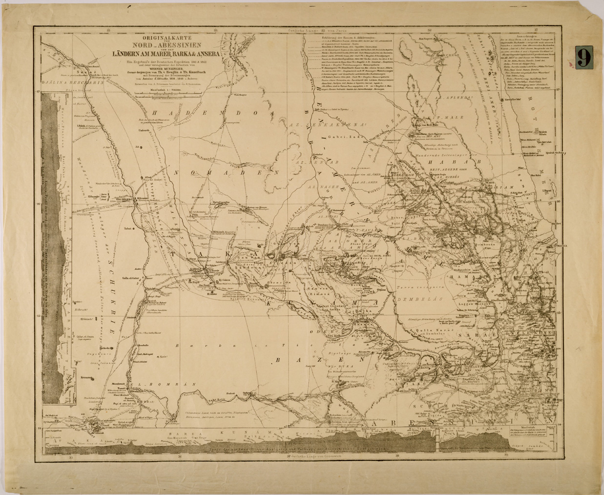 "Carta Tedesca compilata su informazioni della spedizione Werner Munziger Heuglin Kinzelbach del 1861 - 1862 e informazioni di Antoine D' Abbadie del 1838 - 1848"