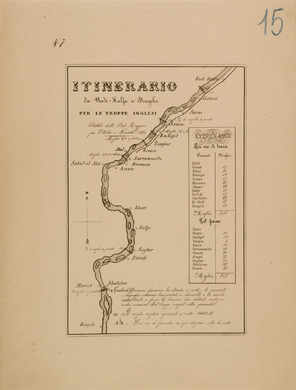 "Itinerario per le Truppe Inglesi percorso su barche sul fiume Nilo."