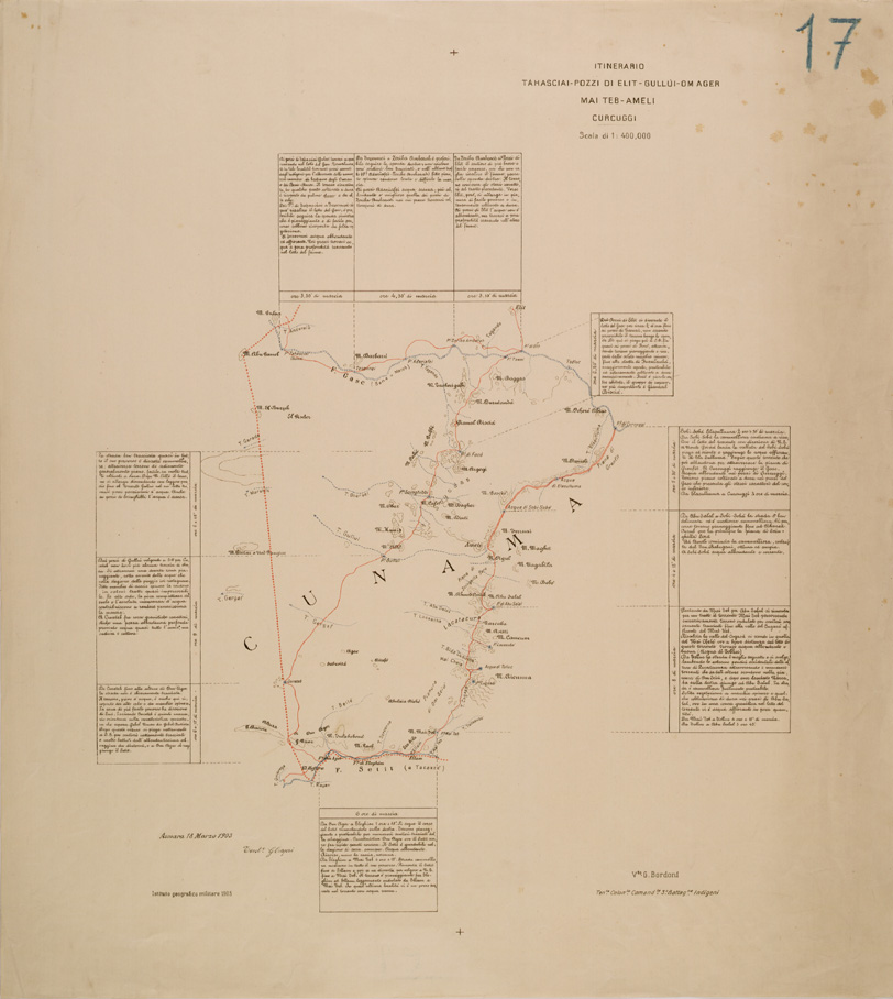 I rilevamenti topografici per la realizzazione della “Carta d´Italia&lrquo” iniziarono nel 1878: si trattava di un´opera così importante e lodevole che meritò la consapevole attenzione, non solo degli addetti ai lavori e delle categorie professionali coinvolte, ma anche delle più alte autorità del Regno.