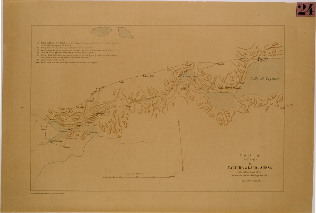 "Riproduzione da originale anonimo redatta dal luog. Izzet effendi membro della spedizione Munzinger Pascia 1875. (quando questi fu massacrato)"