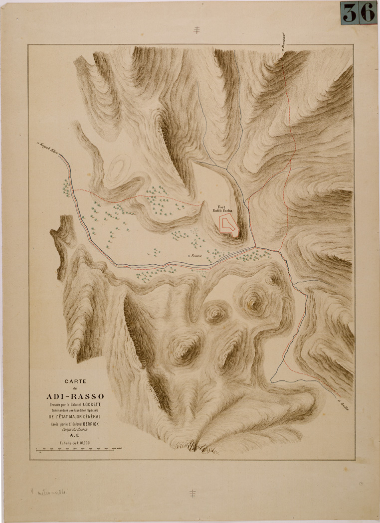 "Disegnata: col. Lockett, comandante di una spedizione speciale dello Stato Magg. Generale, da un rilievo del ten. col. Derrick del corpo del Genio A.E."