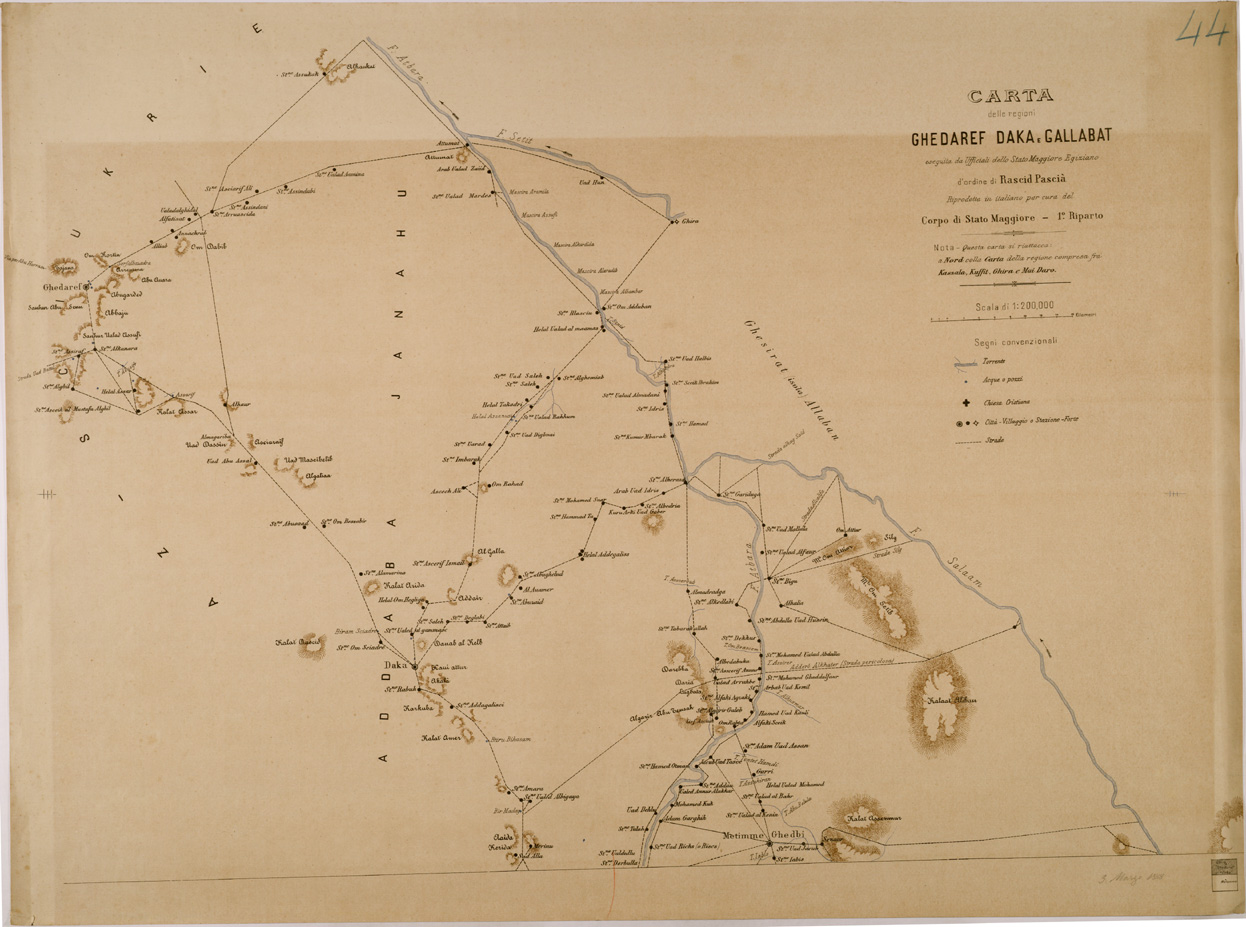 "Eseguita da Ufficiali dello Stato Maggiore Egiziano d'ordine di Rascid Pascià, riprodotta in Italiano dal 1° Reparto del Corpo di Stato Maggiore."