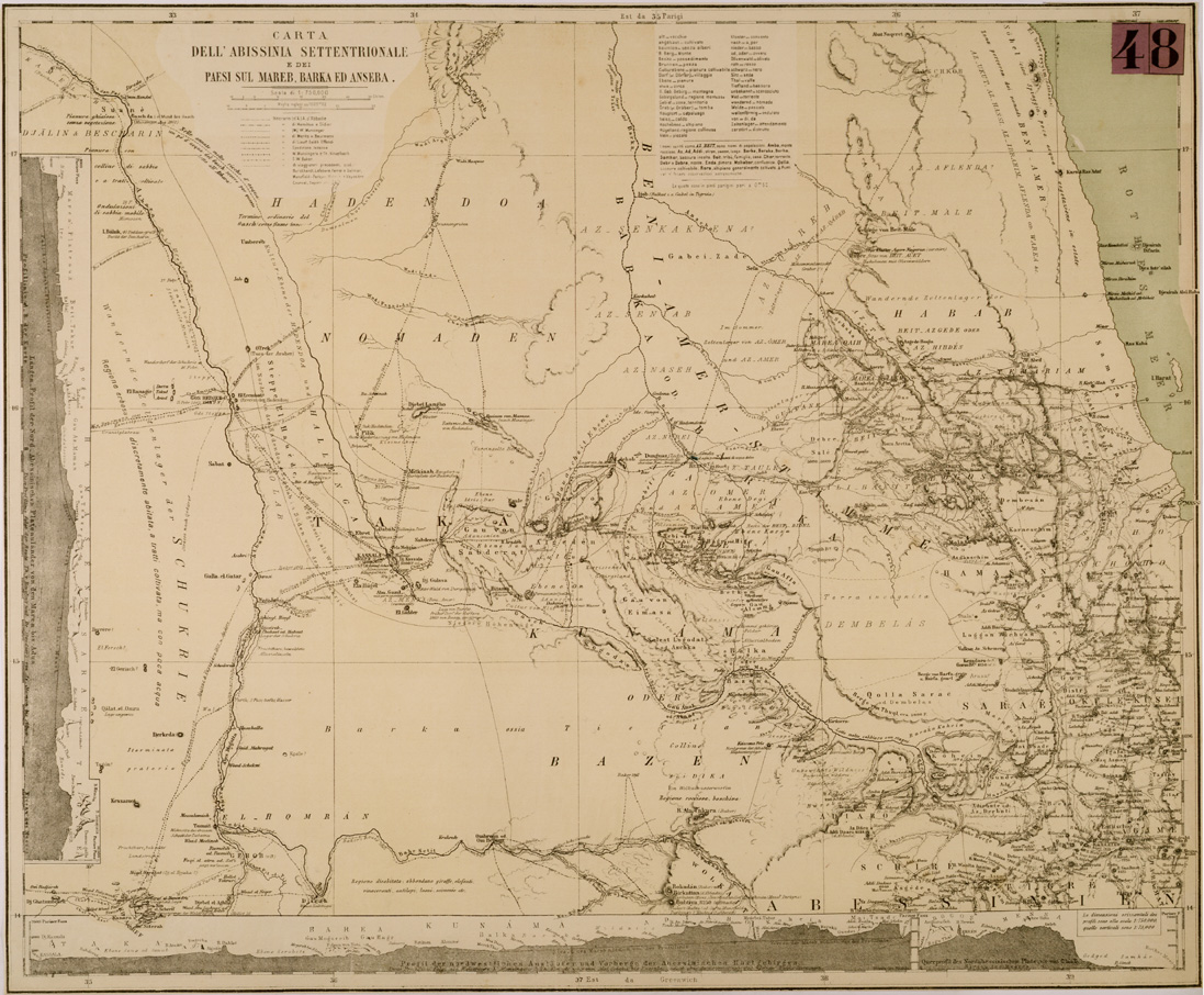 CARTA DELL' ABISSINIA SETTENTRIONALE E DEI PAESI SUL MAREB BARKA ED ANSEBA