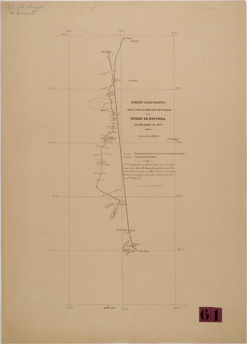 "Schizzo illustrativo della linea di frontiera da Abu Gamel al fiume Setit con il percorso seguito dalla Commissione."
