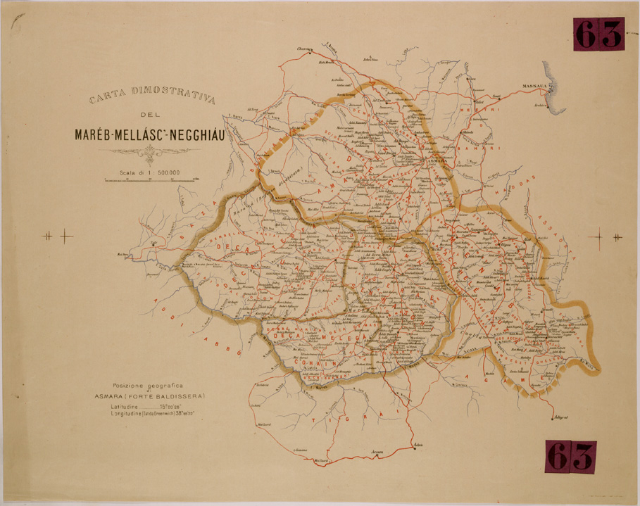 "La carta riporta la posizione geografica di Asmara ( Forte Baldissera )"