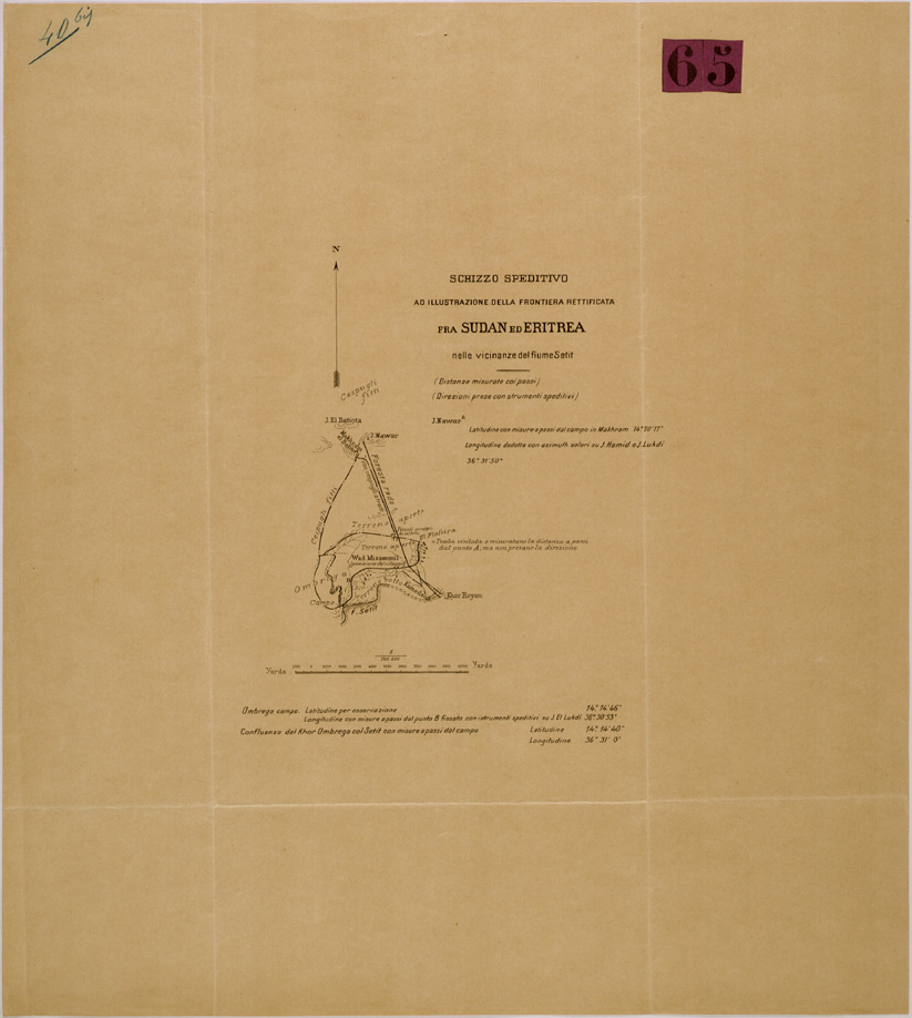 "Schizzo della frontiera nelle vicinanze del Fiume Setit, le distanze sono misurate con i passi."