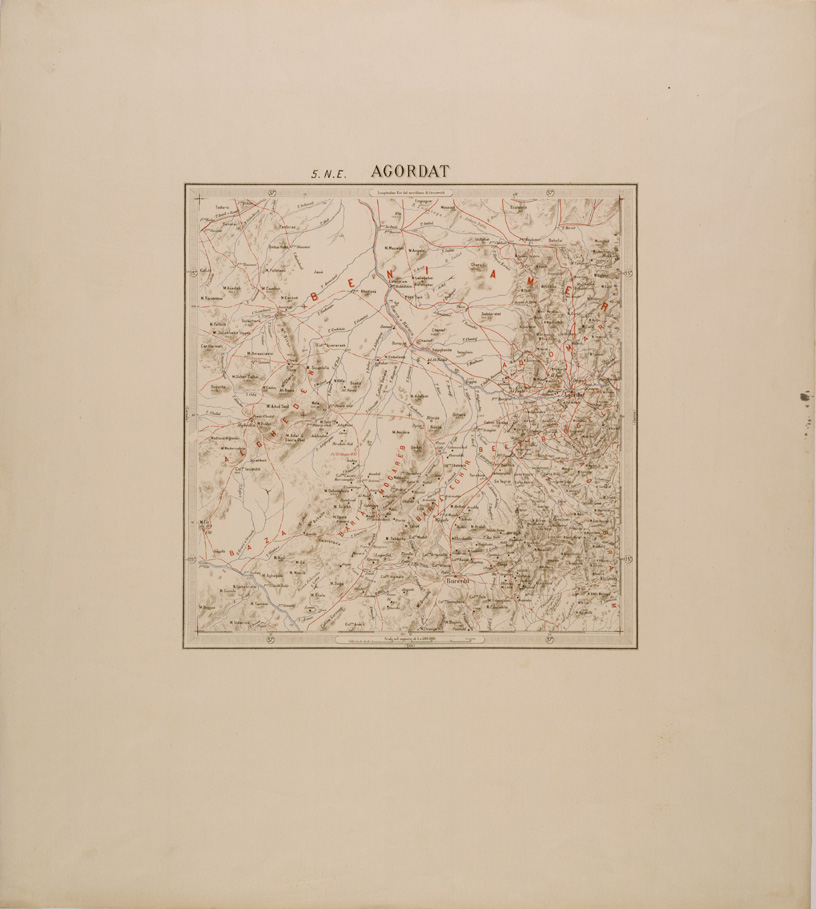 "Carta descrittiva allestita dall'I.G.M. al fine di comprendere i territori rimasti esclusi dai lavori iniziati nella Colonia Eritrea nel 1888. La pubblicazione fu iniziata nel 1897 e ultimata nel 1902. La prima edizione consta di 30 fogli di 1° longitudine per 1° di latitudine e comprende il territorio fra l' 11° e il 16° parallelo e fra il 36° meridiano e il mare. Triangolazioni I.G.M. e determinazioni astronomico-geodetiche dell'Ufficio Topografico della Marina, del geografo D' Abbadie...proiezione policentrica, sostituita dal 1896 con la Cassini, longitudini riferite a Greenwich...in seguito fu allestita una nuova edizione, ampliata al 18° parallelo, per includervi Ras Casar (18°2') e a sud fino all'11° parallelo per la zona ad oriente del 40° meridiano, comprendendo così la regione dell'Aussa ed il territorio adiacente alla baia di Tagiura."
