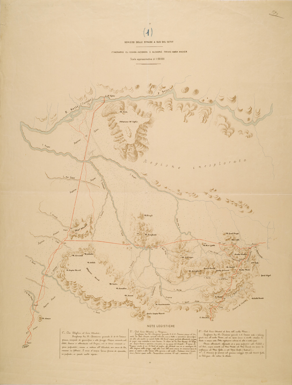 "Le tavole contengono varie note logistiche ed in alcune vi sono indicate le distanze calcolate in ore di marcia, questi itinerari servirono anche come fonte per la compilazione della carta dimostrativa della Colonia Eritrea e regioni adiacenti."