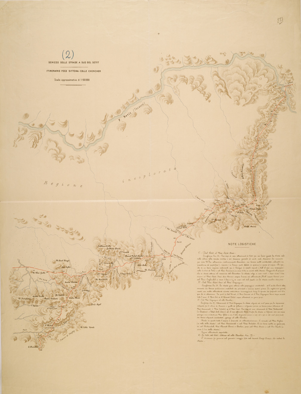 "Le tavole contengono varie note logistiche ed in alcune vi sono indicate le distanze calcolate in ore di marcia, questi itinerari servirono anche come fonte per la compilazione della carta dimostrativa della Colonia Eritrea e regioni adiacenti."