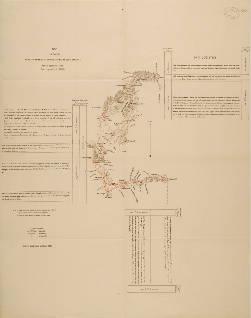 I rilevamenti topografici per la realizzazione della “Carta d´Italia&lrquo” iniziarono nel 1878: si trattava di un´opera così importante e lodevole che meritò la consapevole attenzione, non solo degli addetti ai lavori e delle categorie professionali coinvolte, ma anche delle più alte autorità del Regno.
