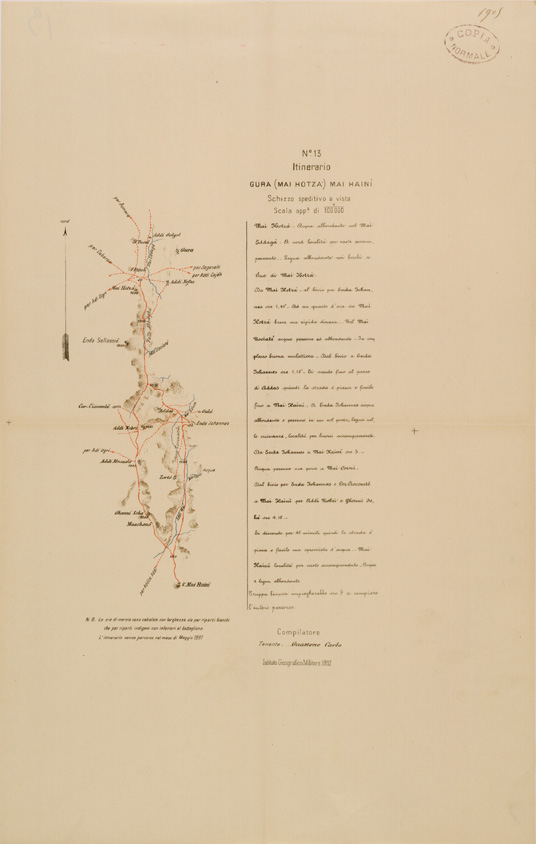 I rilevamenti topografici per la realizzazione della “Carta d´Italia&lrquo” iniziarono nel 1878: si trattava di un´opera così importante e lodevole che meritò la consapevole attenzione, non solo degli addetti ai lavori e delle categorie professionali coinvolte, ma anche delle più alte autorità del Regno.