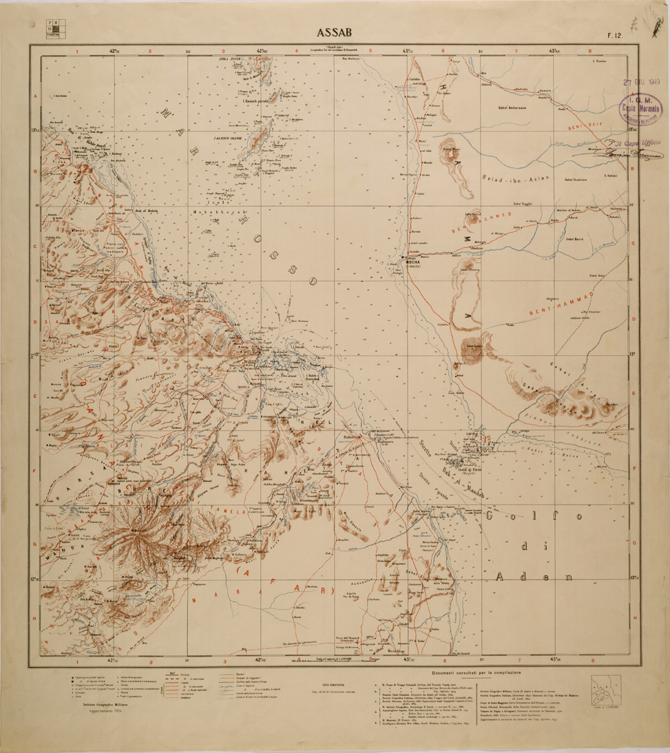 CARTA DIMOSTRATIVA DELLA COLONIA ERITREA E DELLE REGIONI ADIACENTI - FOGLIO 12 - ASSAB