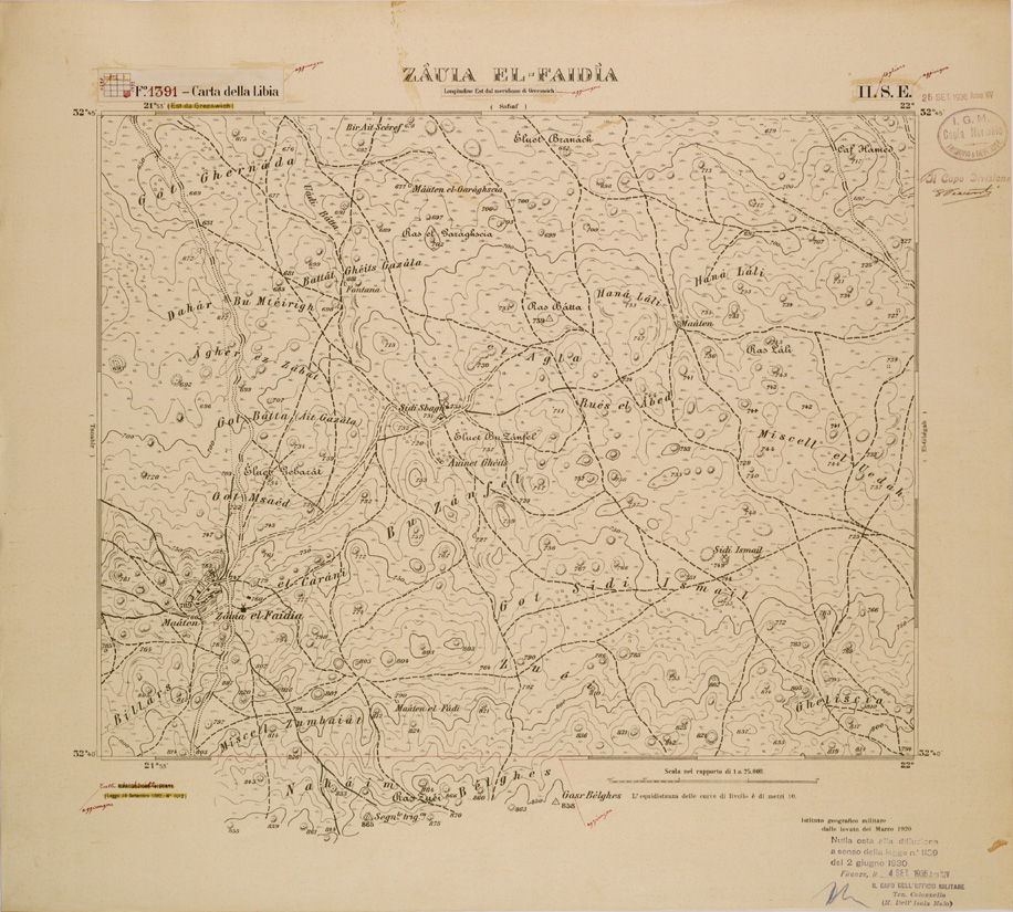 CARTA DELLA LIBIA FOGLIO 1391 II SE ZAUIA EL FAIDIA