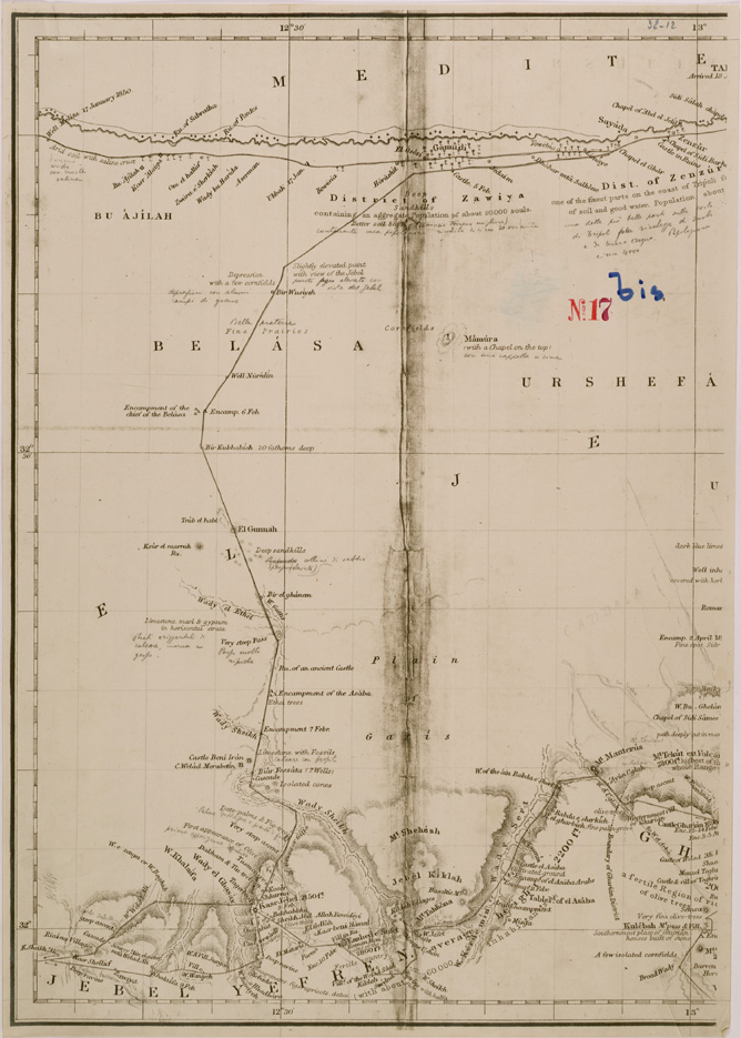 MAP OF THE ROUTE THROUGH THE YEFREN, GURIAN, TARHO'NA E MESELLATA M.TS. - FOGLIO 1.