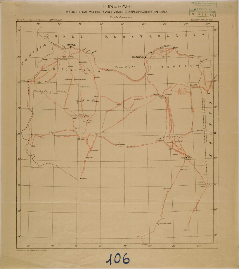 ITINERARI SEGUITI DAI PIU' NOTEVOLI VIAGGI DELL'ESPLORAZIONE IN LIBIA.