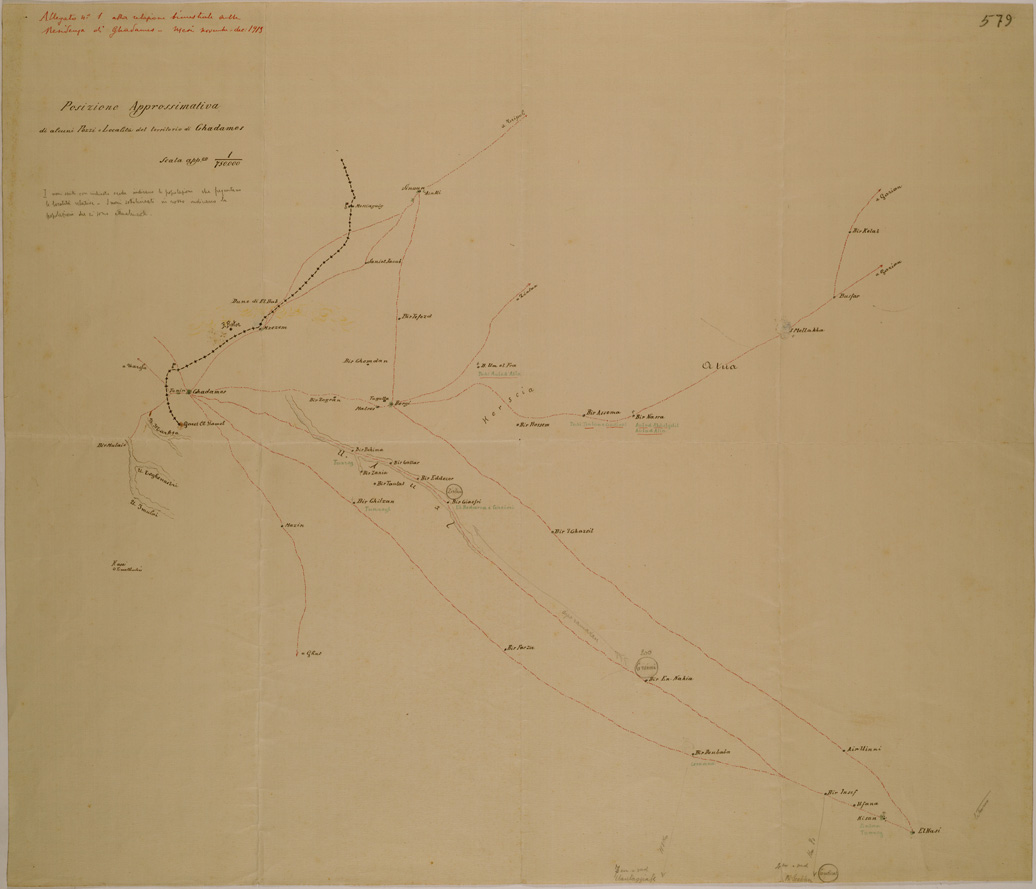 POSIZIONE APPROSSIMATIVA DI ALCUNI POZZI E LOCALITA' DEL TERRITORIO DI GHADAMES