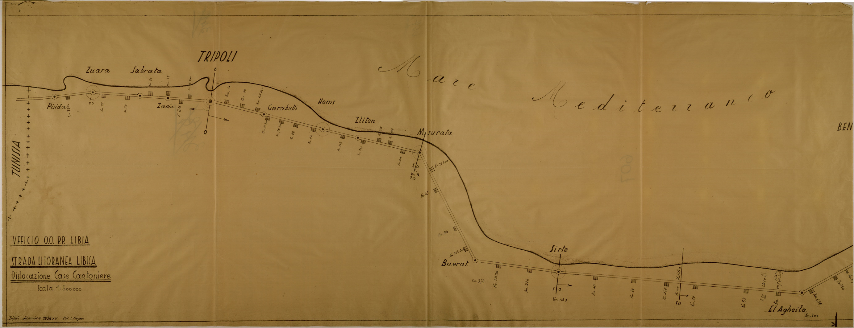 STRADA LITORANEA LIBICA - DISLOCAZIONE CASE CANTONIERE - CARTA 1.