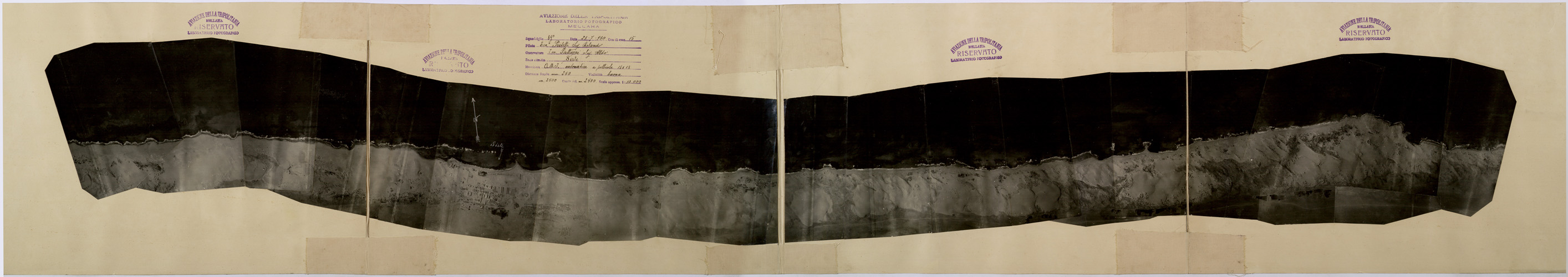 "Rilievi fotografici aerei eseguiti nel Luglio 1930 con macchina automatica O.M.I a pellicola 13 x 18 distanza focale 250 mm quota di volo 2.500 metri visibilità buona. Montaggio eseguito presso il laboratorio fotografico della Tripolitania a Mellaha."