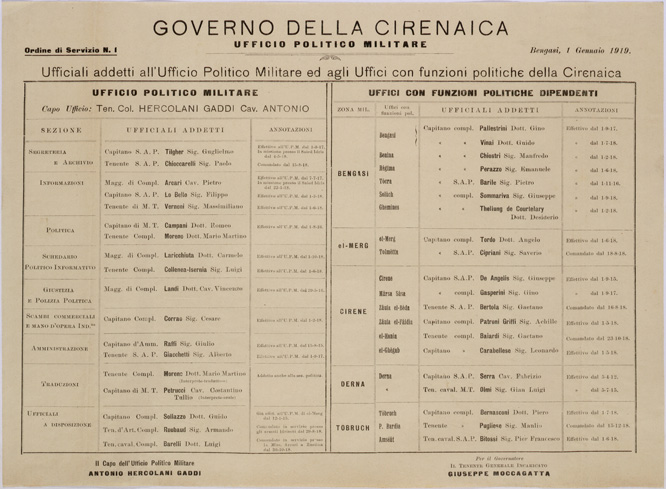 GOVERNO DELLA CIRENAICA - UFF. POL. MILITARE ORDINE DI SERVIZIO N. 1.
