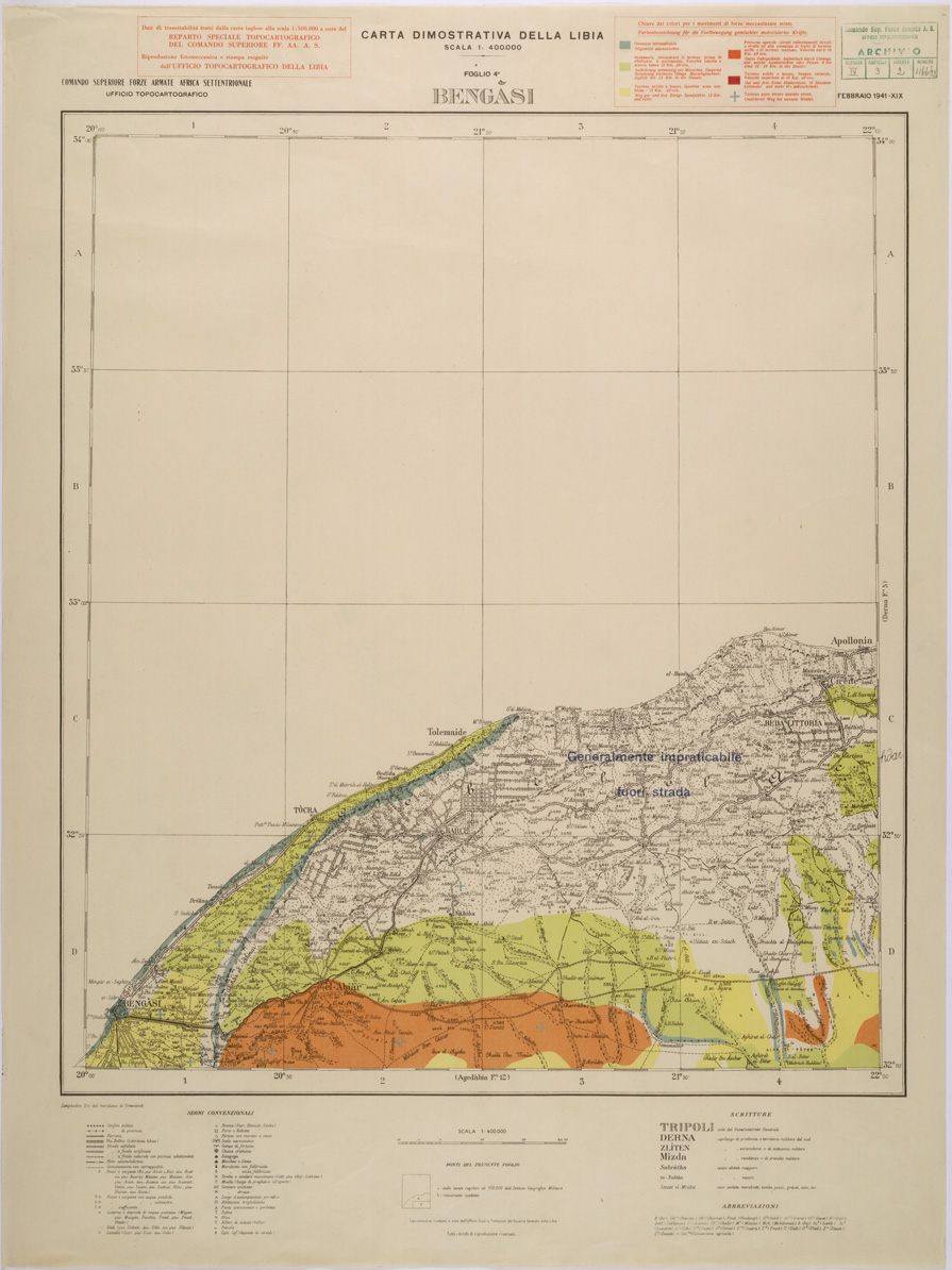 CARTA DELLA TRANSITABILITA' DELLA CIRENAICA - BENGASI.