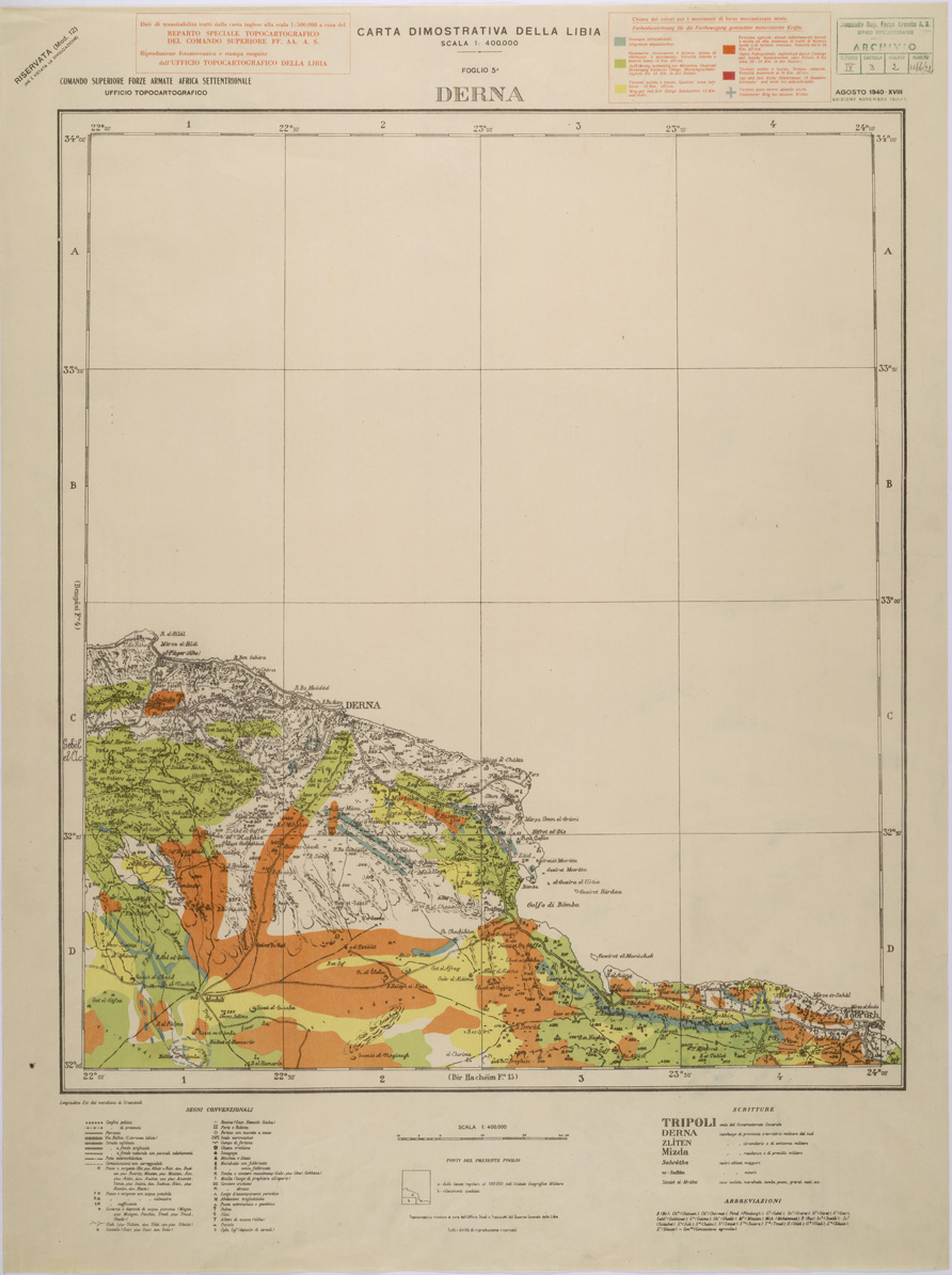 CARTA DELLA TRANSIBILITA' DELLA CIRENAICA - DERNA.