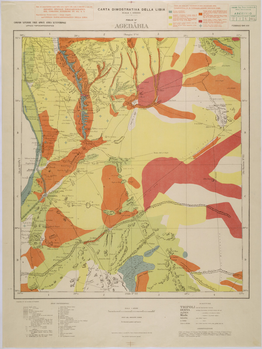 CARTA DELLA TRANSITABILITA' DELLA CIRENAICA - AGEDABIA.