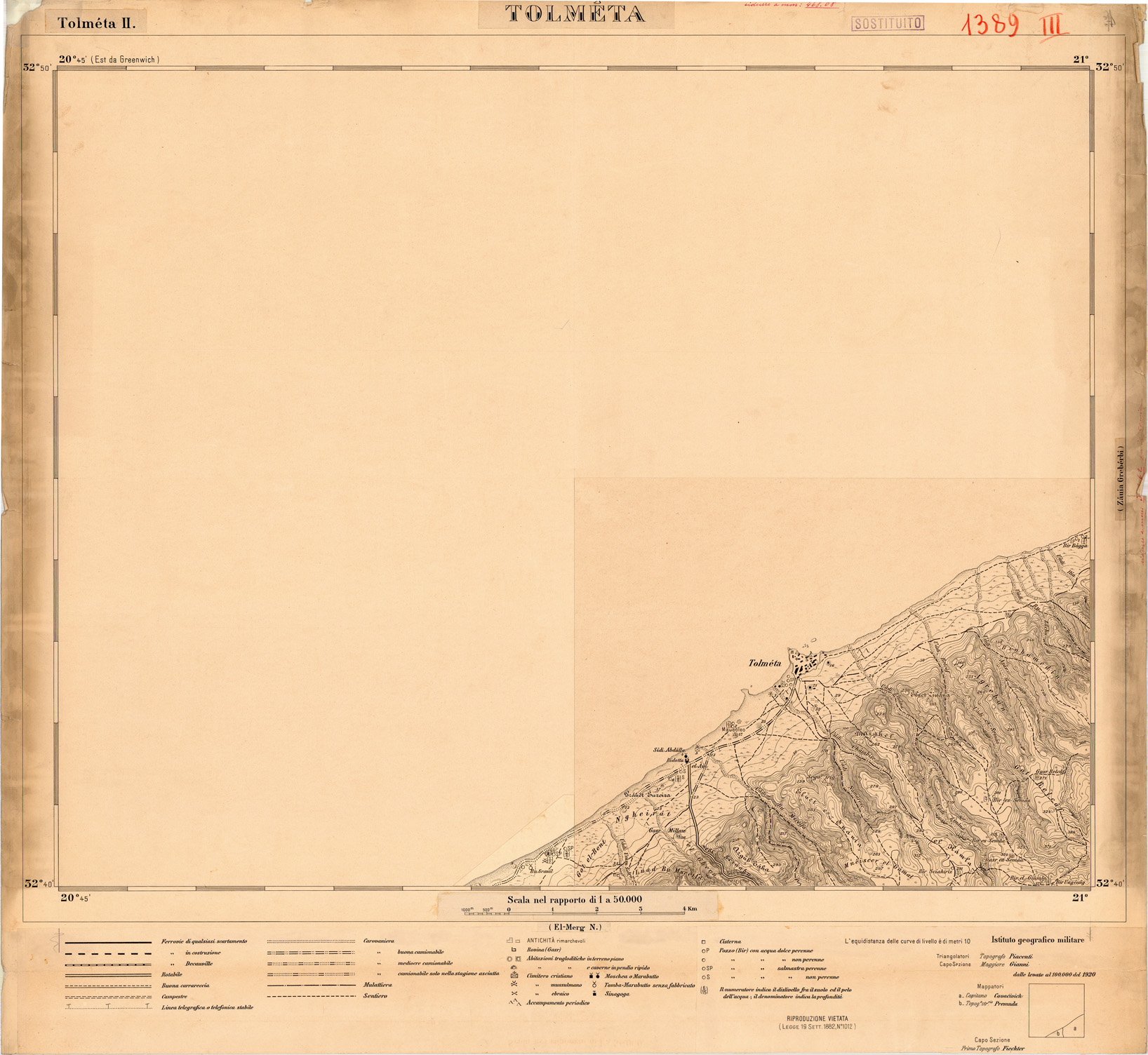 CARTA DELLA LIBIA - FOGLIO 1389 II - TOLMETA - ORIGINALI ALLA SCALA DI 1:25.000