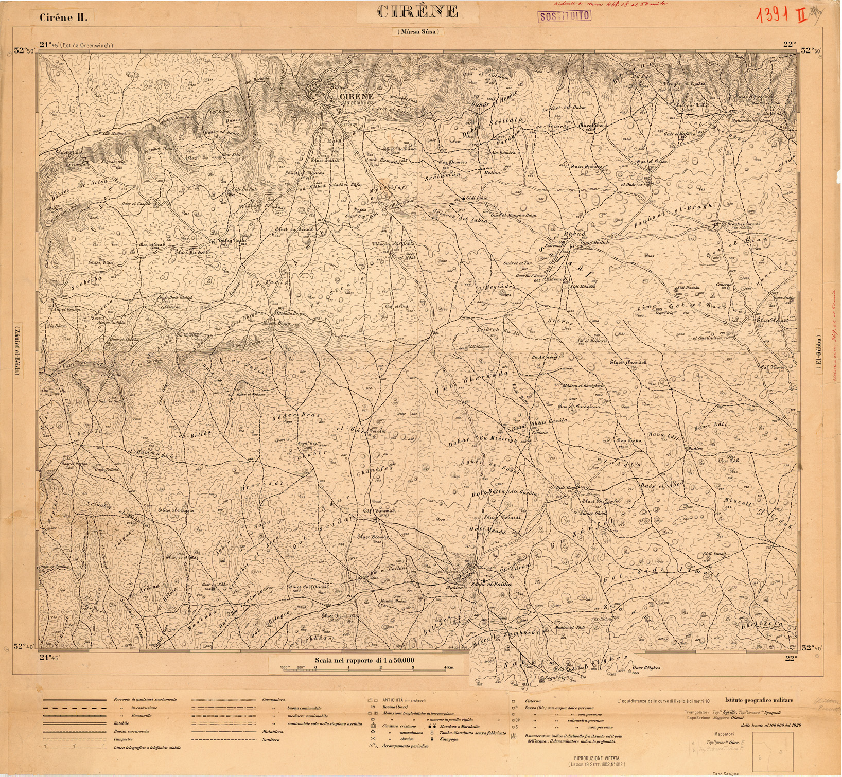 CARTA DELLA LIBIA - FOGLIO 1391 II - CIRENE - ORIGINALI ALLA SCALA DI 1:25.000