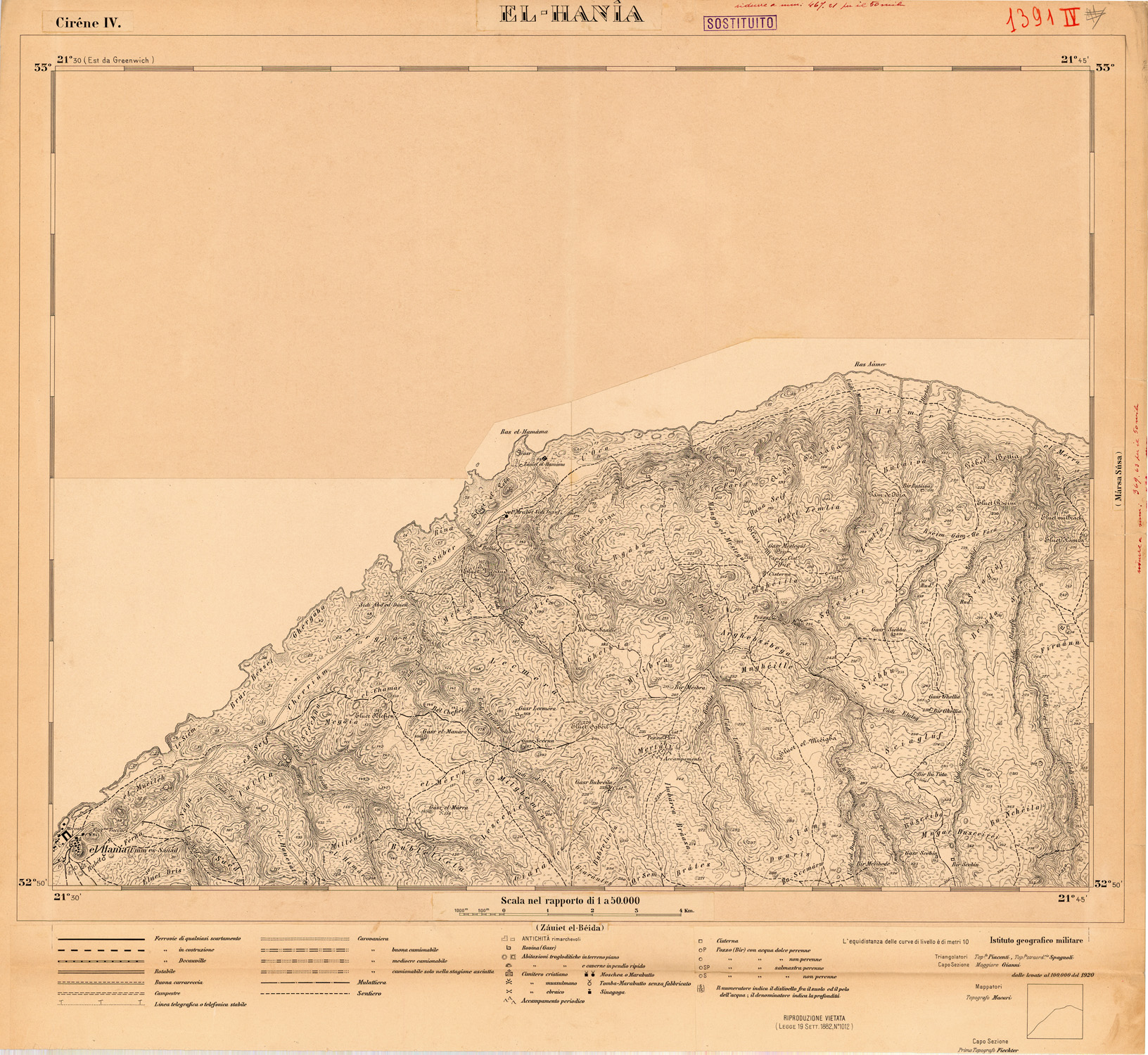 CARTA DELLA LIBIA - FOGLIO 1391 IV - EL HANIA - ORIGINALI ALLA SCALA DI 1:25.000