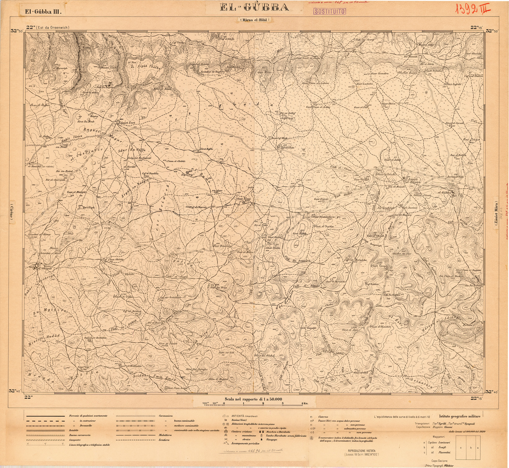 CARTA DELLA LIBIA - FOGLIO 1392 III - EL GUBBA - ORIGINALI ALLA SCALA DI 1:25.000