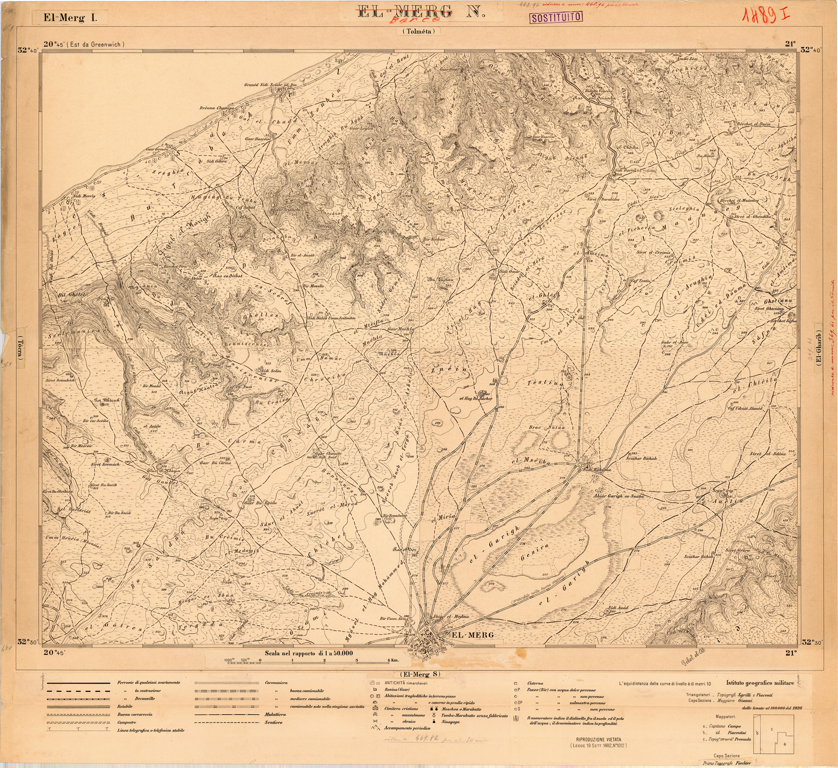 CARTA DELLA LIBIA - FOGLIO 1489 I - BARCE N - ORIGINALI ALLA SCALA DI 1:25.000